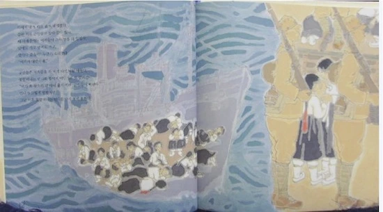 The book has a unique history. It is the first collaborative project developed by the Collaborative International Picture Book Project, a group of four authors from Korea, Japan, and China as well as a publisher from each of them. These three nations are geographical neighbors, yet their history is replete with disputes, conflicts, and war with each other. Bridging these age-old controversies is the Collaborative International Picture Book Project. Their purpose is “honest recording, sharing each other’s sadness, and moving forward for the peaceful future through the collaborative works among three nations”