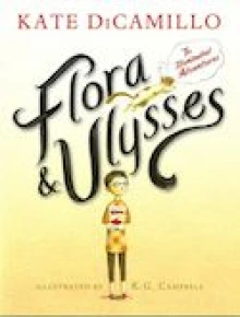 I promised the answer to who are Flora and Ulysses? Flora and Ulysses are the main characters of Kate DiCamillo’s 2014 Newbery award winning novel Flora and Ulysses: The Illuminate Adventures. Flora is a young cynical girl (her own description), who lives mostly in her head acting out her favorite action character Incandesto from the comic book The Illuminated Adventures of the Amazing Incandesto. Flora’s father has recently moved from her house to an apartment. Flora currently lives with her romance fiction writing mother. Ulysses is a squirrel that through no fault of his own is transformed into super-hero, poet writing, squirrel. While illustrated by K. G. Campbell, this novel not a graphic novel, but uses that genre’s feel to give readers an insight to Flora and Ulysses’ thoughts and some of their actions.