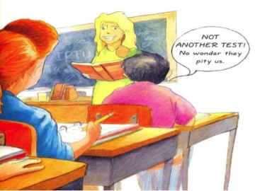Miss Malarkey is a good teacher. Usually she’s really nice. But a couple of weeks ago she started acting a little weird. She started talking about THE TEST: The Instructional Performance Through Understanding test. I think Miss Malarkey said it was the “I.P.T.U.” test (Finchler, J, 2003).