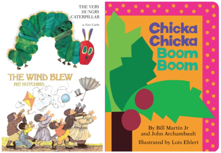 The book Shh! We Have a Plan by Chris Haughton (The Irma Simonton Black and James H. Black Award for Excellence in Children's Literature), allows for the reader to vary their voice tone and intensity, as well as use gestures and facial expressions. Another technique is to use props, such as items found in books like The Wind Blew by Pat Hutchins and The Very Hungry Caterpillar by Eric Carle. Actively involving children in the story can also augment a read aloud. Children can participate by using gestures or saying certain words when they appear in the story, such as in the popular early childhood book, Chicka Chicka Boom Boom by Bill Martin Jr. and John Archambault.