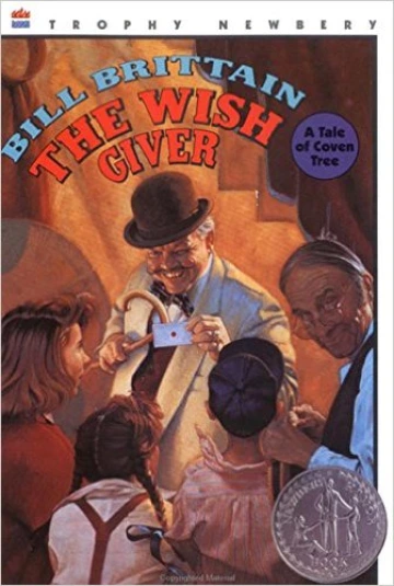 Stew Meat (Stewart Meade), the owner of the local general store in The Wish Giver, tells the story of three local kids and himself who each buy a wish for 50 cents at the annual church social. There, “way off at the far end of the lawn, down by the clump of birch trees, is a space where ‘outsiders’ can set up booths.” When Stew enters Thaddeus Blinn’s tent, he finds Polly Kemp, Rowena Jervis, and Adam Fiske already there. Once they have each paid Blinn 50 cents, he gives them a small white card with a red spot in the center, telling them, "The card will bring you anything your heart could desire...Anything. Wealth...beauty...fame. Just wish, and it will be yours. But each card can grant only a single wish, so think carefully before making it."