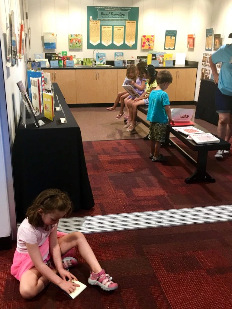 "Even though our exhibit is based on the IBBY 'Silent Books' exhibit, we decided to call ours 'Visual Narratives' rather than 'silent' or 'wordless,'" says Rebecca Ballenger, Associate Director for WOW. "Visual Narratives more precisely conveys how a series of powerful images can capture the range of human emotion and deeper meanings to tell a story, using few or no words except in the title."
