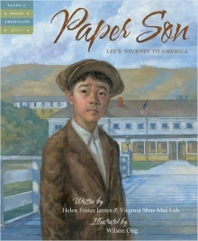 Paper Son, written by Helen Foster James and Virginia Shin-Mui Loh (2013), is set in 1926 and tells the story of a 12-year-old boy from a small village in rural China who lives with his grandparents. Because of their poverty, his loving grandparents want to provide him with more opportunities and so purchase a "paper son slot." Being a paper son means pretending to be the son of a Chinese family already in the U.S. and passing a rigorous test at the Angel Island Immigration Station in San Francisco. He must diligently study his coaching book to memorize every detail about his paper family because if he makes any mistakes, he will be sent back to China, wasting his grandparents' money. The Chinese Exclusion Act, 1882-1943, banned Chinese immigrants from entering the U.S., with only a few exceptions, resulting in practices such as paper sons and paper daughters.