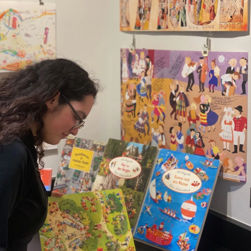 The Whole World On One Page was conceived by the International Youth Library in Munich, Germany. For more information on this exhibit, contact Maria Luise Weber at wanderausstellungen@ijb.de. More about this exhibition can be found at https://www.ijb.de/en/exhibitions/travelling-exhibitions/single/the-whole-world-on-one-page-international-wimmelbooks. Information on IYL can be accessed at https://www.ijb.de/en/about-us/the-international-youth-library.