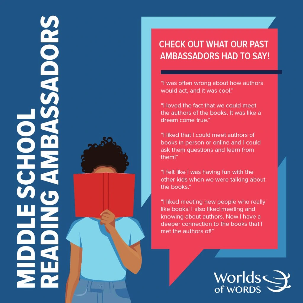 * For a deep dive into the history of the Worlds of Words Reading Ambassador program, visit the Fall 2023 issue of WOW Stories.