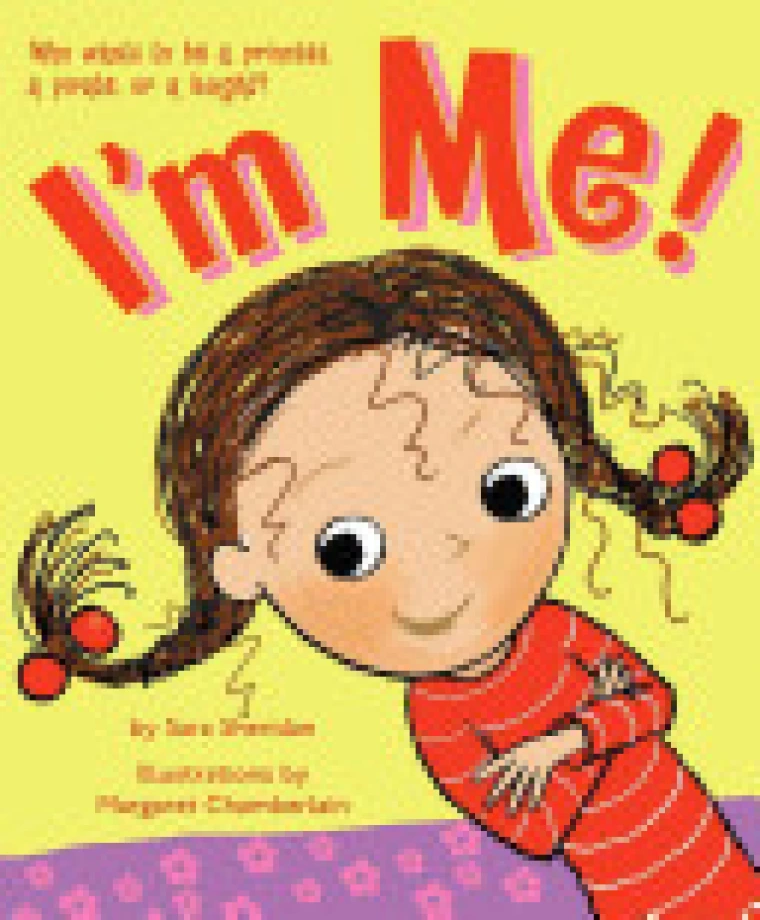 Little Imogen doesn't want to play princess or pirate! Why pretend? Being herself is the most fun of all! The story of a girl who knows who she is: "I'm Me!" Grown-ups! Always telling kids what to do, how to act, and who to be! Imogen is excited to spend the day with her Auntie Sara, but which dress-up game does she want to play? Who is Imogen today? Is she a frilly princess in a poufy gown? A knight in shining armor, taming a flying dragon? An astronaut blasting off into space? "No, no, no!" Imogen sings, with a shake of her pigtails. She doesn't want to be any of those things! "Well," Auntie Sara asks, "if you're not a princess or a knight or an astronaut, who are you?" "I'm me!" Imogen declares. And that's the best role of all.
