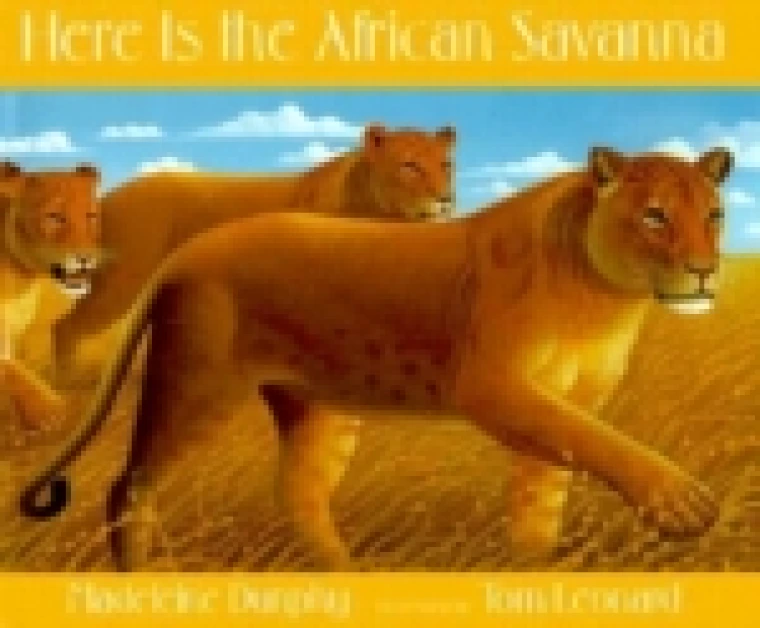 Cumulative text describes the interdependence among the plants and animals of an African savanna. Giraffes, lions, hippos, elephants, and many more animals are all part of the food web of the African savanna.