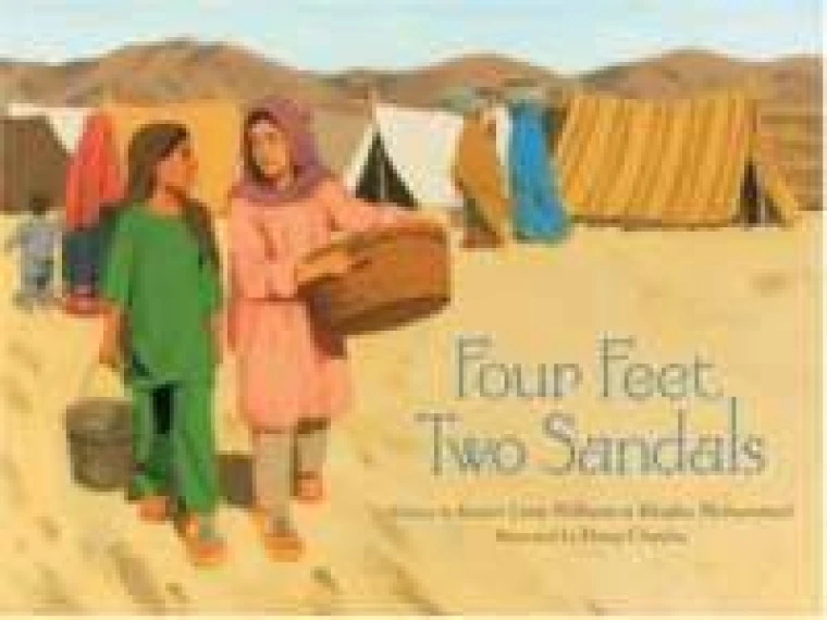 When relief workers bring used clothing to the refugee camp, everyone scrambles to grab whatever they can. Ten-year-old Lina is thrilled when she finds a sandal that fits her foot perfectly, until she sees that another girl has the matching shoe. Soon Lina and Feroza meet, each wearing one coveted sandal. Together they solve the problem of having four feet and two sandals. As the girls go about their routines - washing clothes in the river, waiting in long lines for water, and watching for their names to appear on the list to go to America - the sandals remind them that friendship is what is most important.