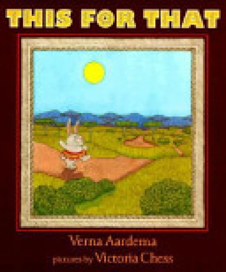 This for That Rabbit tricks the other animals of the African plain into giving her food and other treats. author Verna Aardema illustrator Victoria Chess ISBN: 9780803715530 Published: 1997 Dial 32 Genre: Folklore and Fairy Tales Picture Book Age: Primary (ages 6-9) Region: Africa Botswana Mozambique South Africa Zimbabwe Themes: Rabbits Tricks