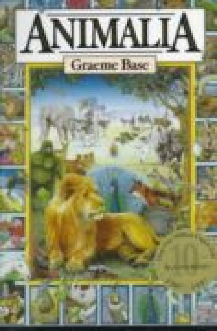 An alphabet book with fantastic and detailed pictures, bearing such labels as "Lazy lions lounging in the local library.