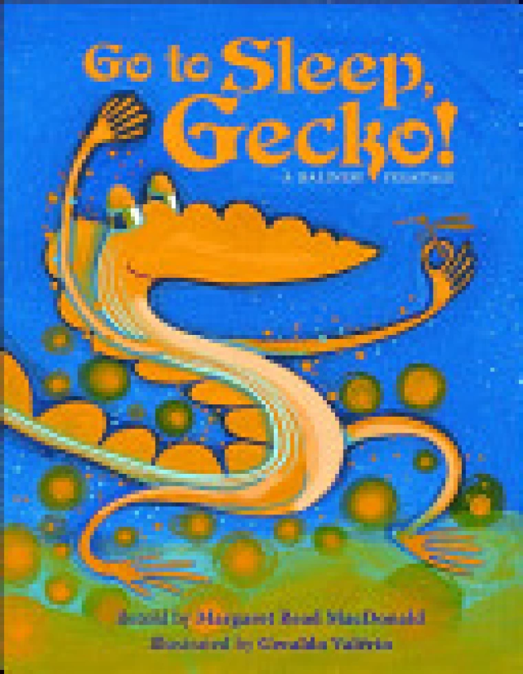 The author of The Girl Who Wore Too Much retells the folktale of the gecko who complains to the village chief that the fireflies keep him awake at night but then learns that in nature all things are connected.