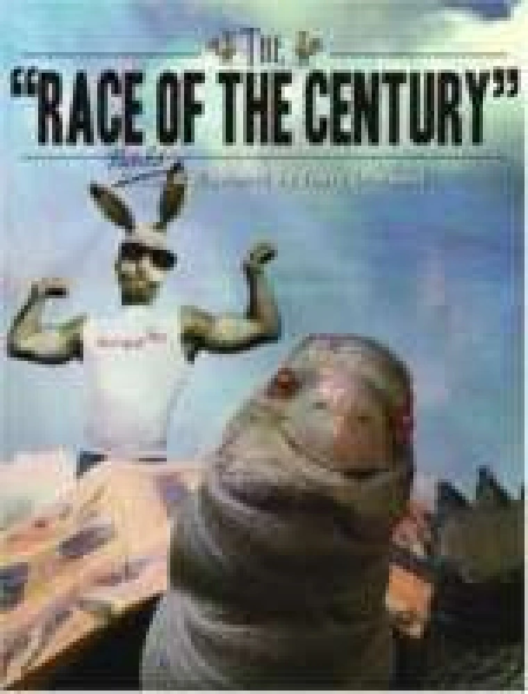 Tom Tortoise challenges Flash Harry Hare, But while Flash Harry gets distracted signing autographs for his adoring fans, stopping for photo ops, and snacking, Tom Tortoise keeps going, slowly and steadily, to win the race.