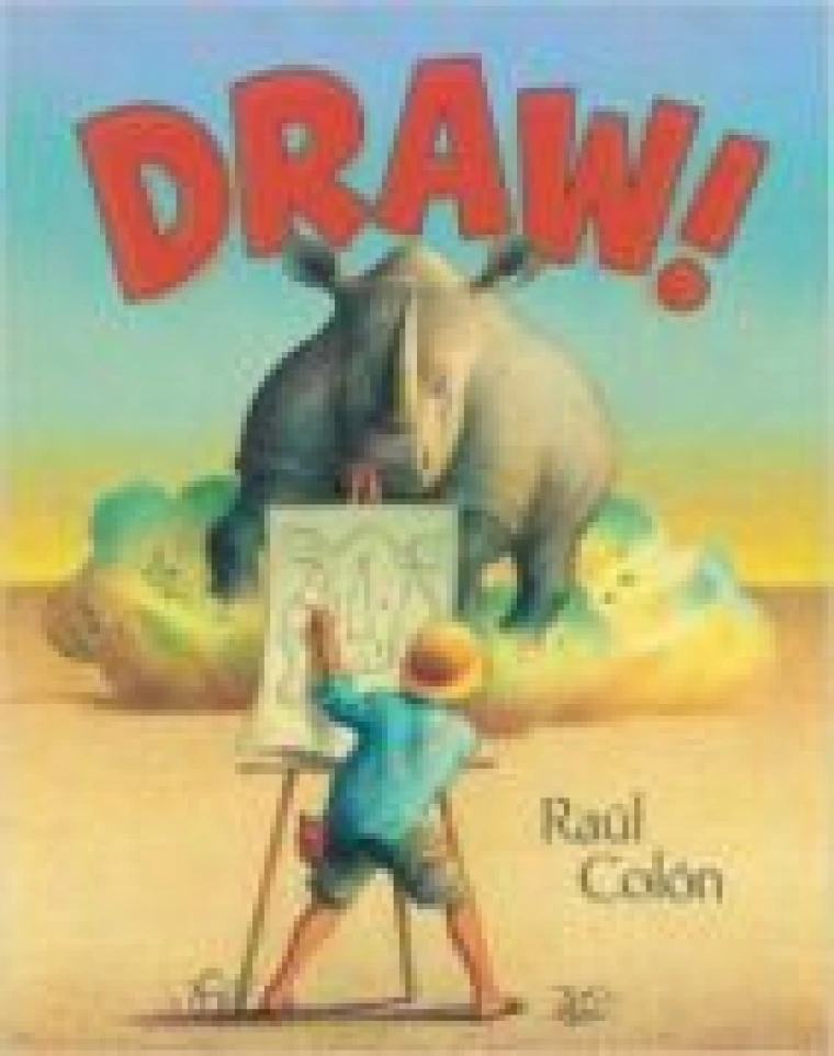 In this wordless picture book, a boy who is confined to his room fills his sketch pad with lions and elephants, then imagines himself on a safari.