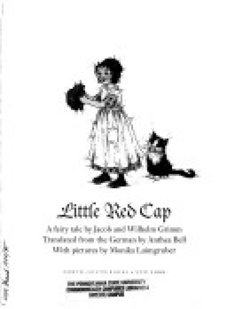 Little Red Cap A little girl meets a hungry wolf in the forest while on her way to visit her grandmother. author Brothers Grimm illustrator Monika Laimgruber translator Anthea Bell ISBN: 9781558581678 Published: 1945 North-South 32 Genre: Folklore and Fairy Tales Picture Book Age: Primary (ages 6-9) Region: Europe Germany Themes: Wolf forest