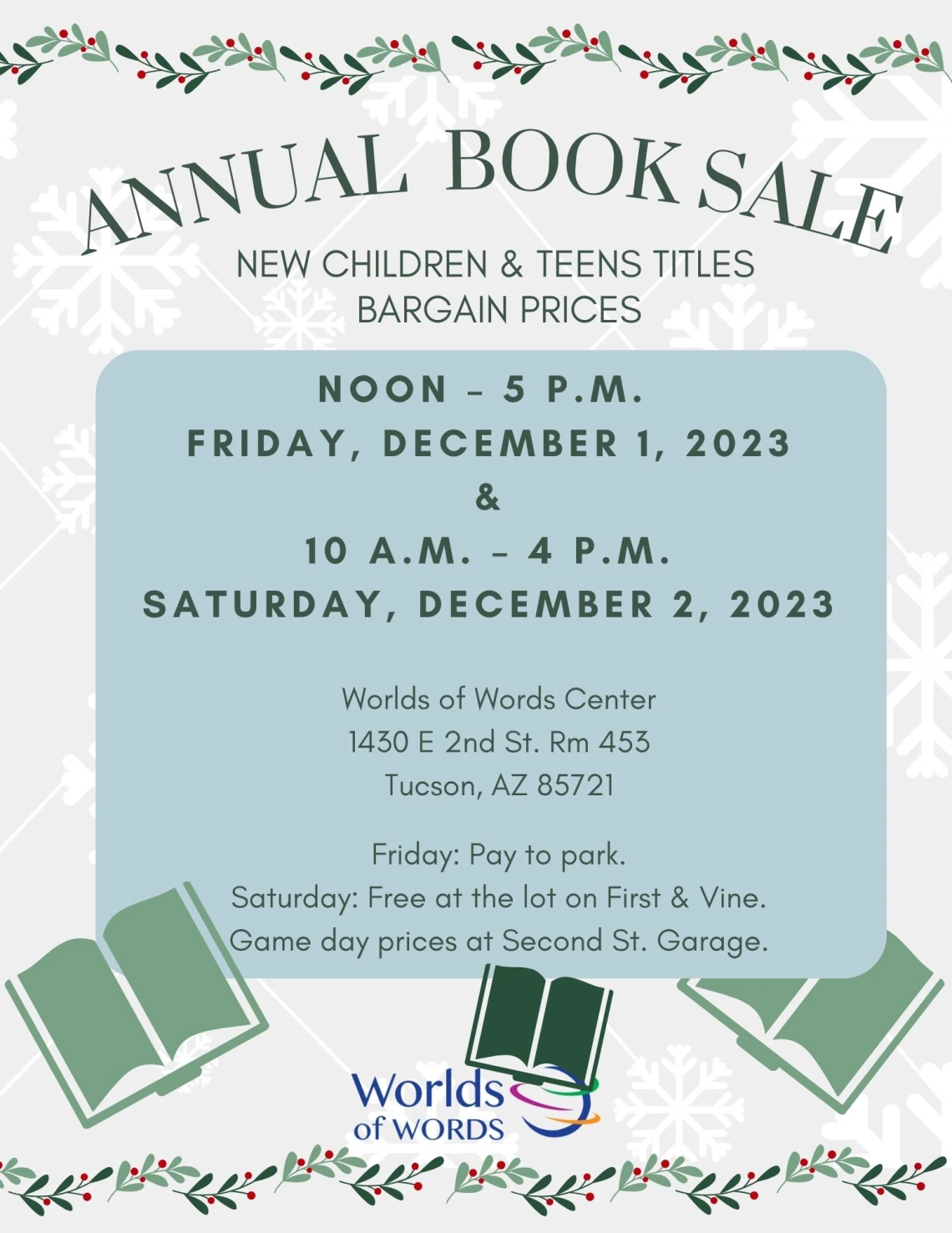Stop by Worlds of Words to browse the 2022/23 titles available at the Annual Book Sale! We have tons of new books for children and teens (marked down at super great prices), so come take a look before they’re all gone!