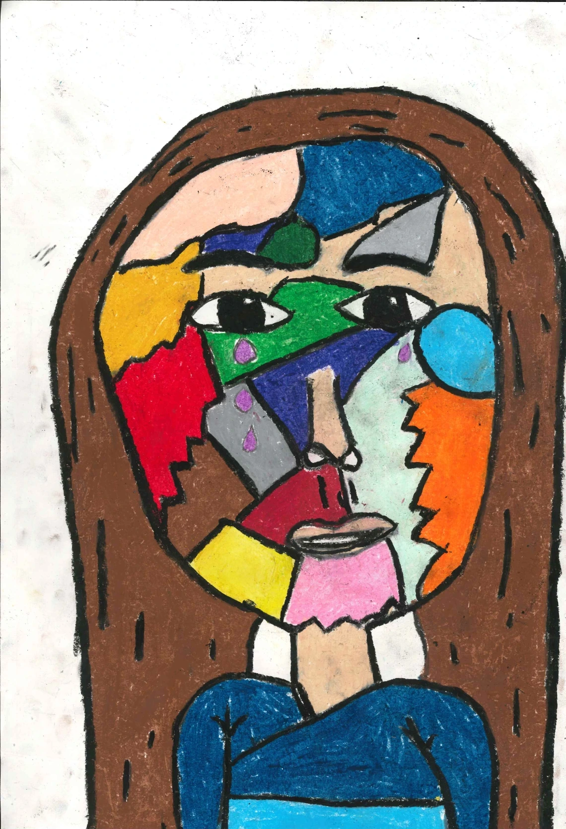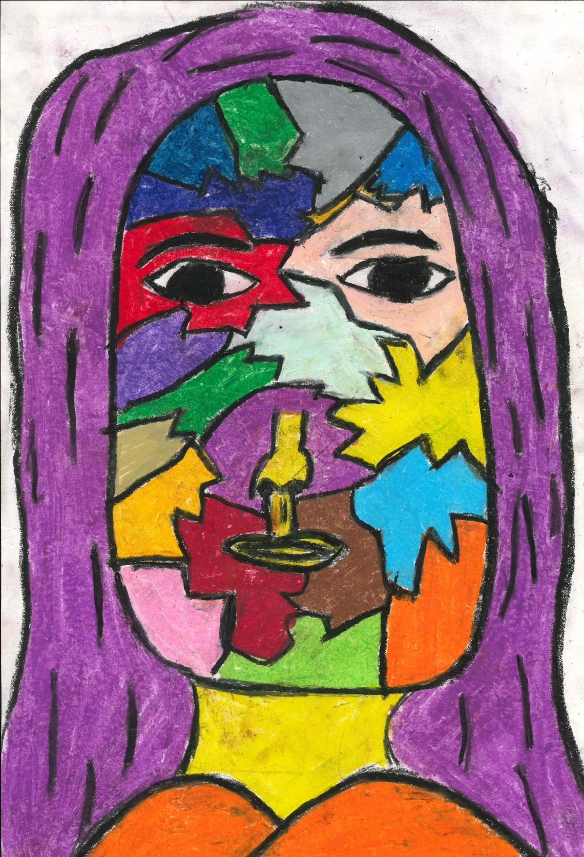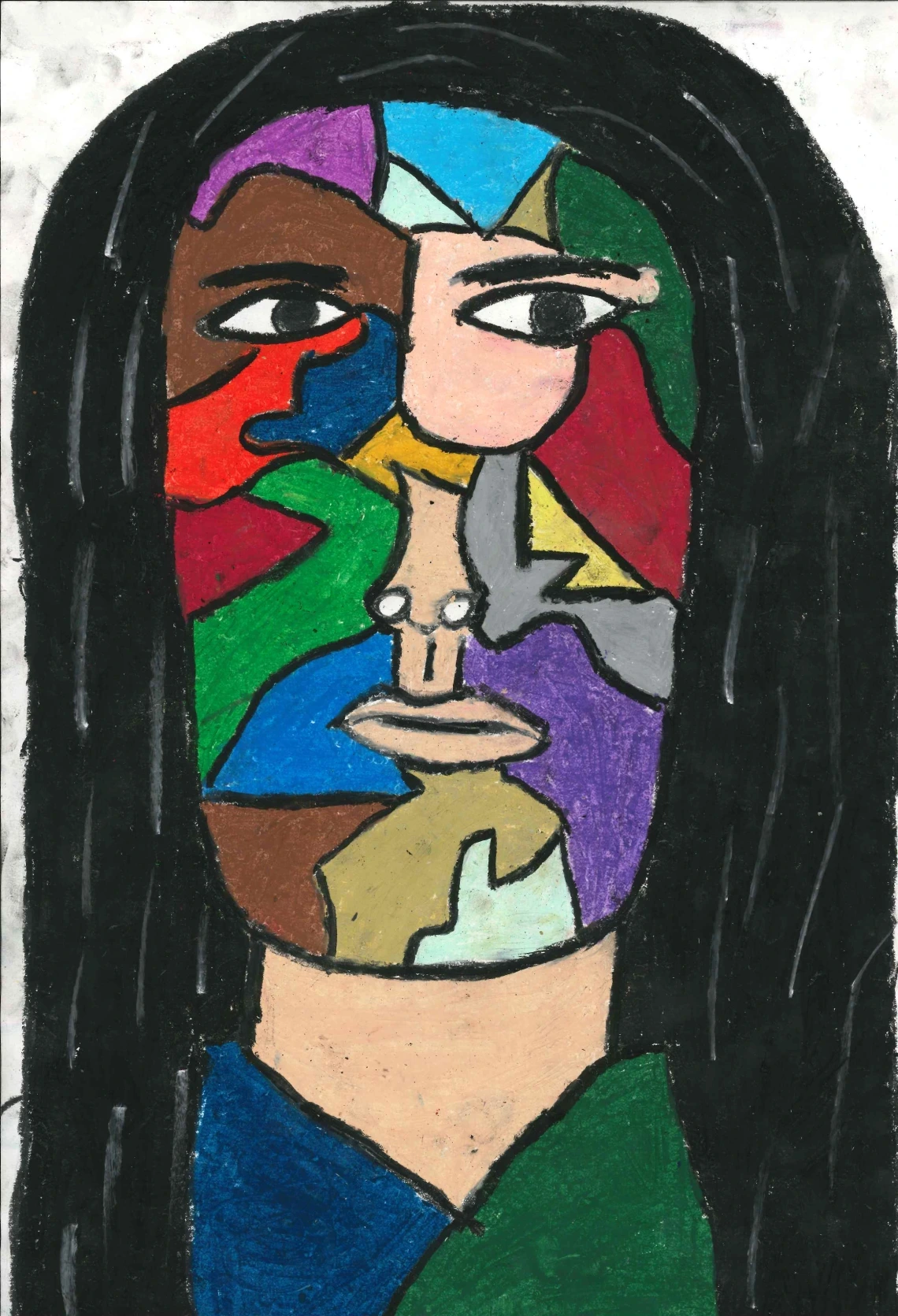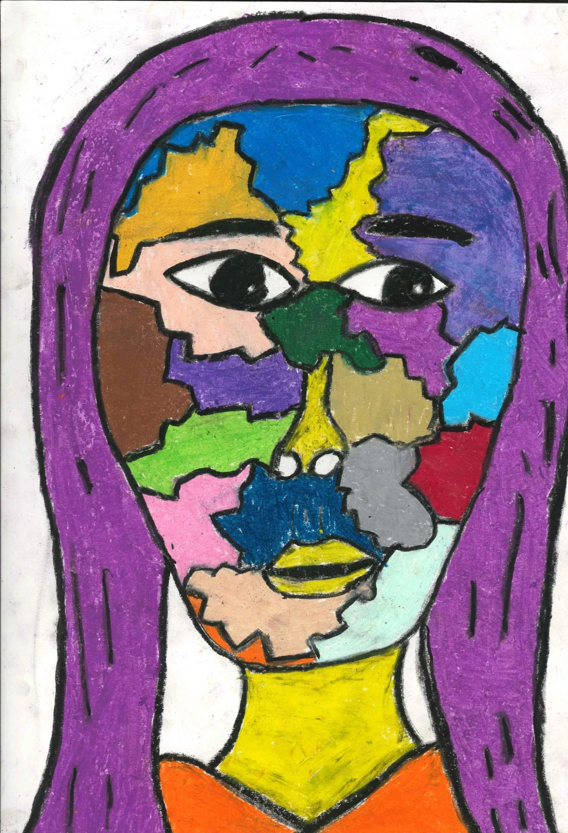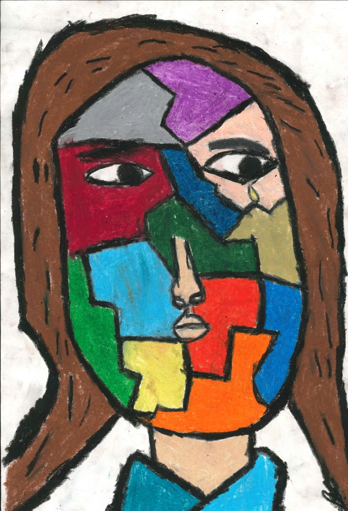 The students portrayed the emotions of Japanese Americans falsely accused and imprisoned in these camps using Picasso-like portrayals of faces fractured in pieces to represent the fracturing of their lives.