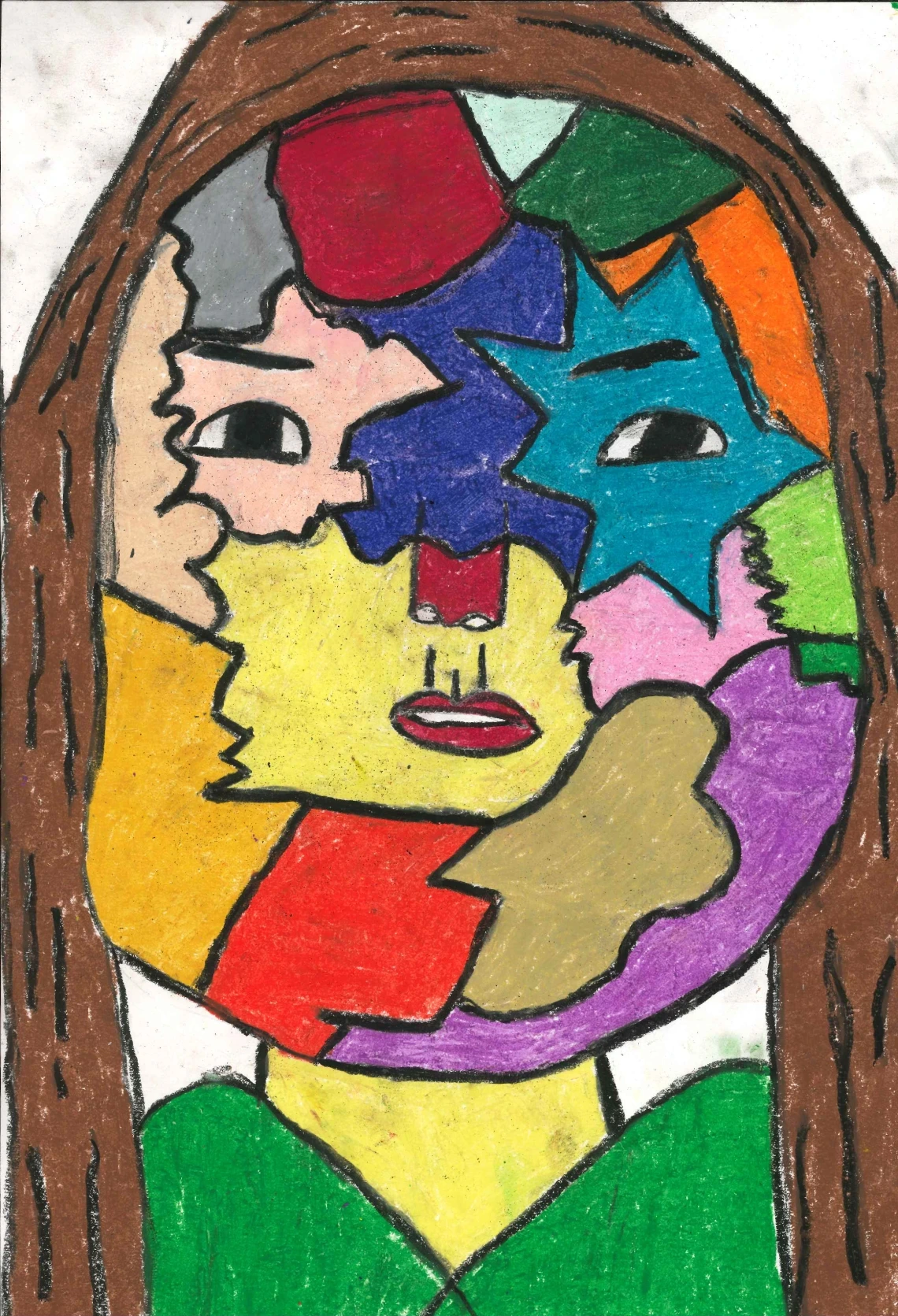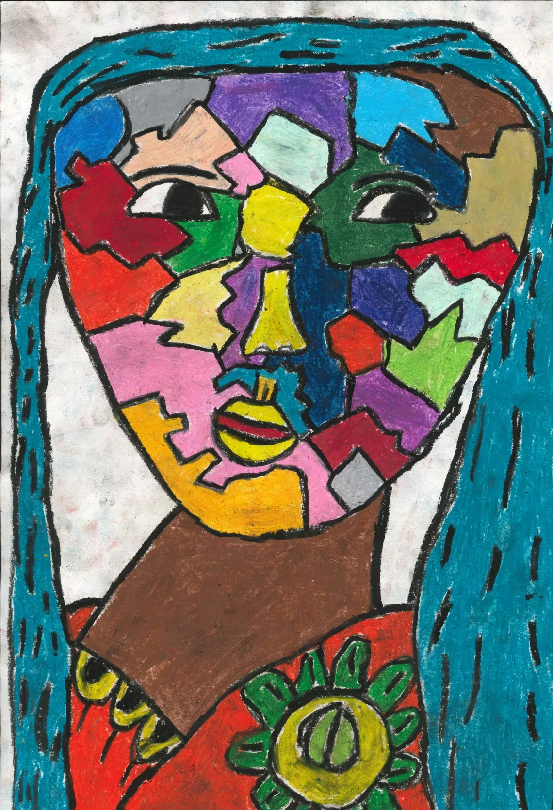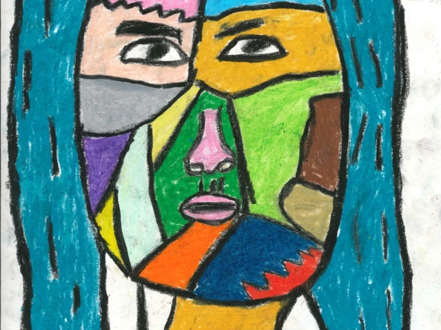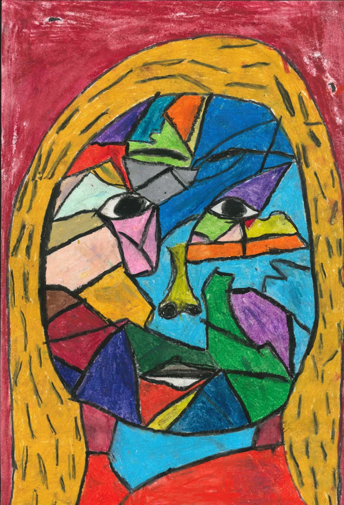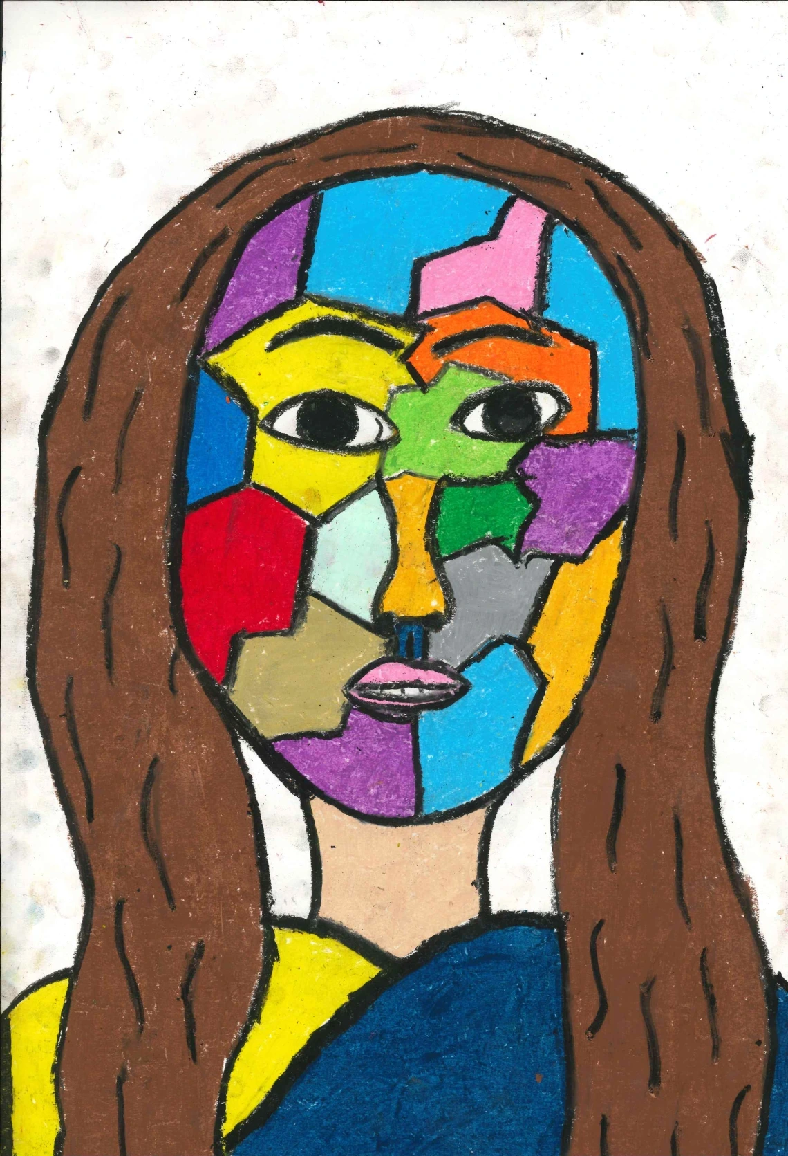 The students portrayed the emotions of Japanese Americans falsely accused and imprisoned in these camps using Picasso-like portrayals of faces fractured in pieces to represent the fracturing of their lives.