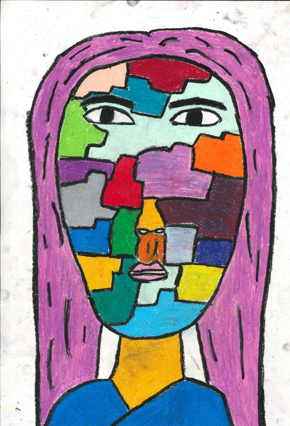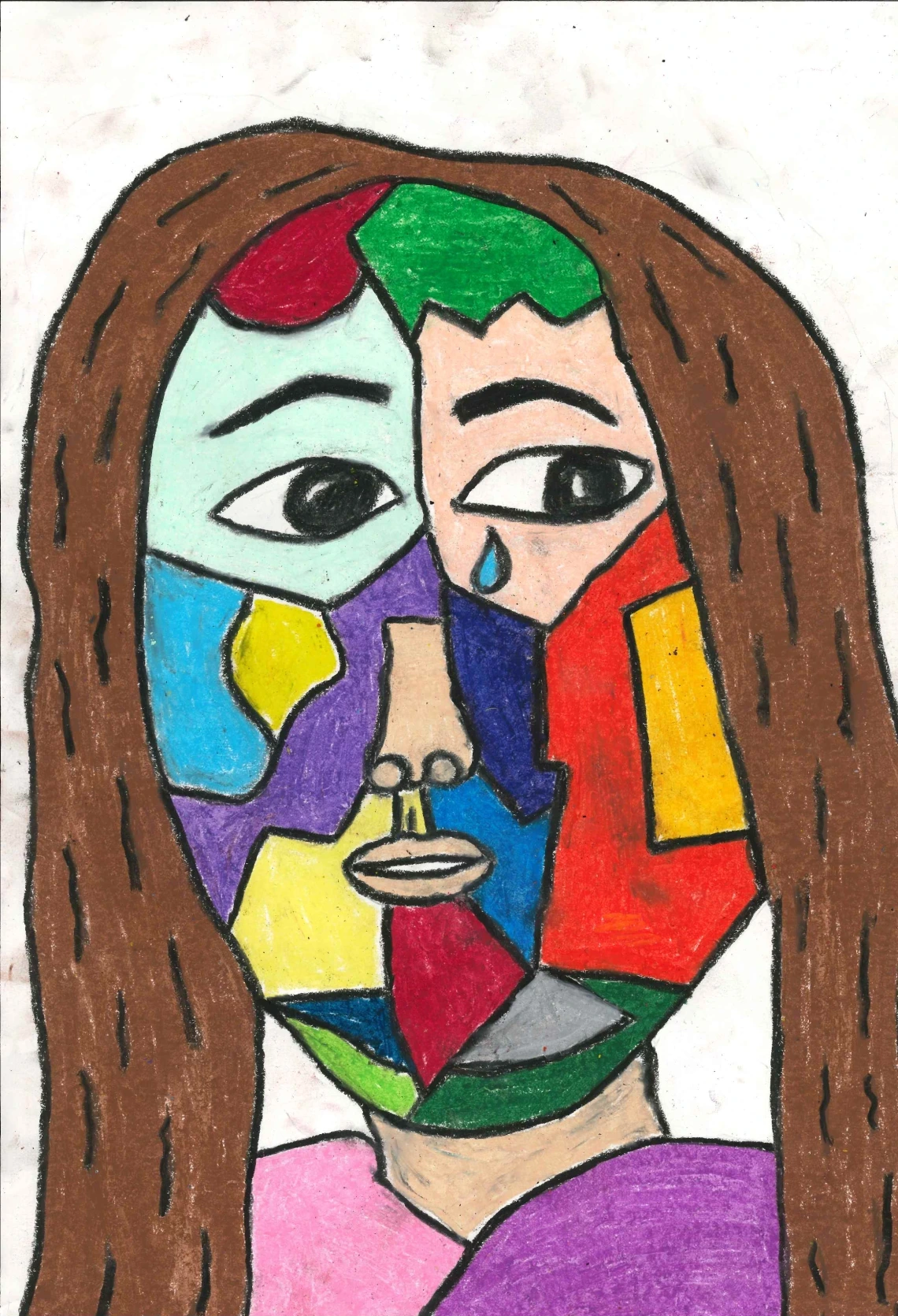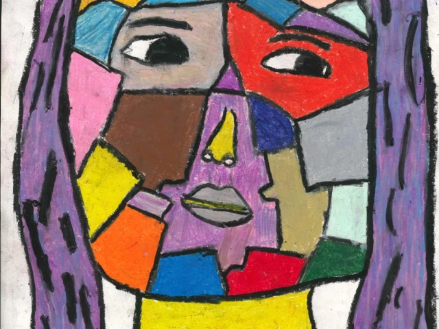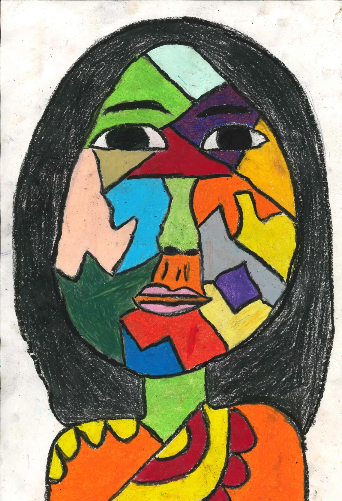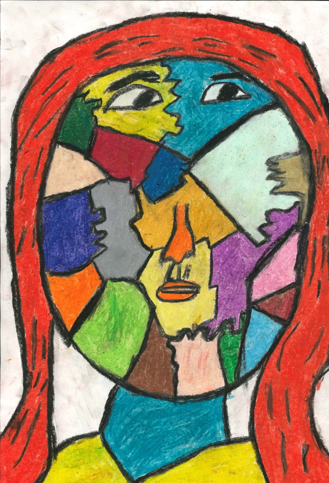 The students portrayed the emotions of Japanese Americans falsely accused and imprisoned in these camps using Picasso-like portrayals of faces fractured in pieces to represent the fracturing of their lives.
