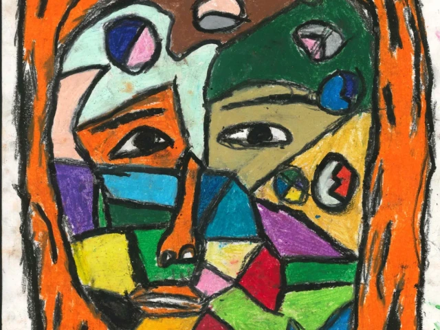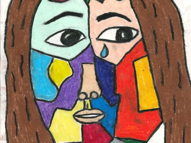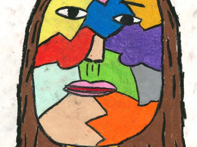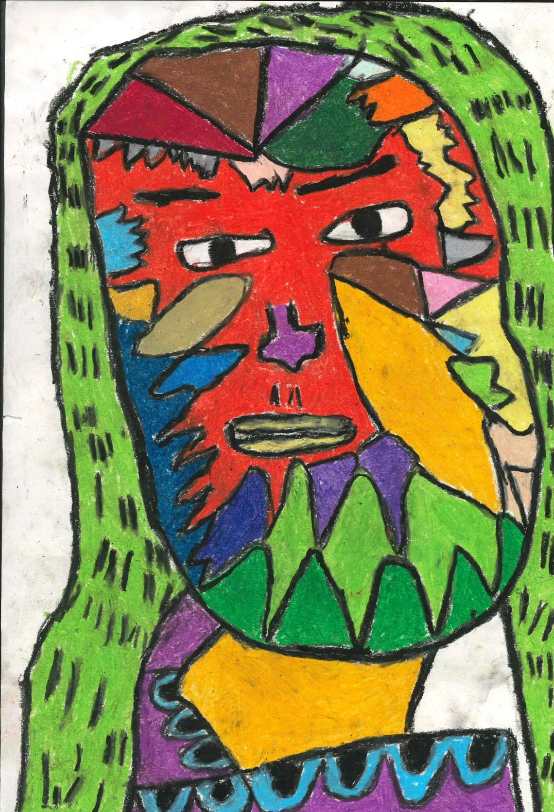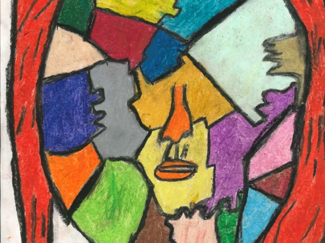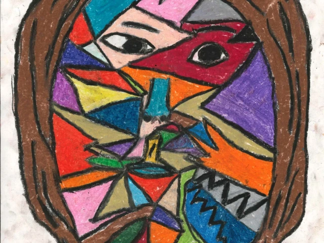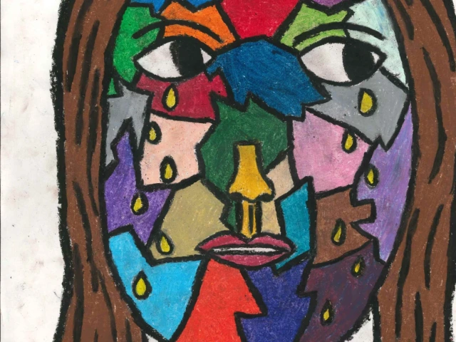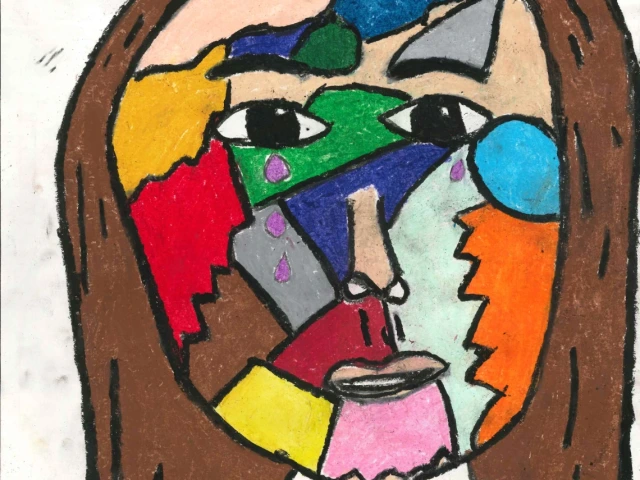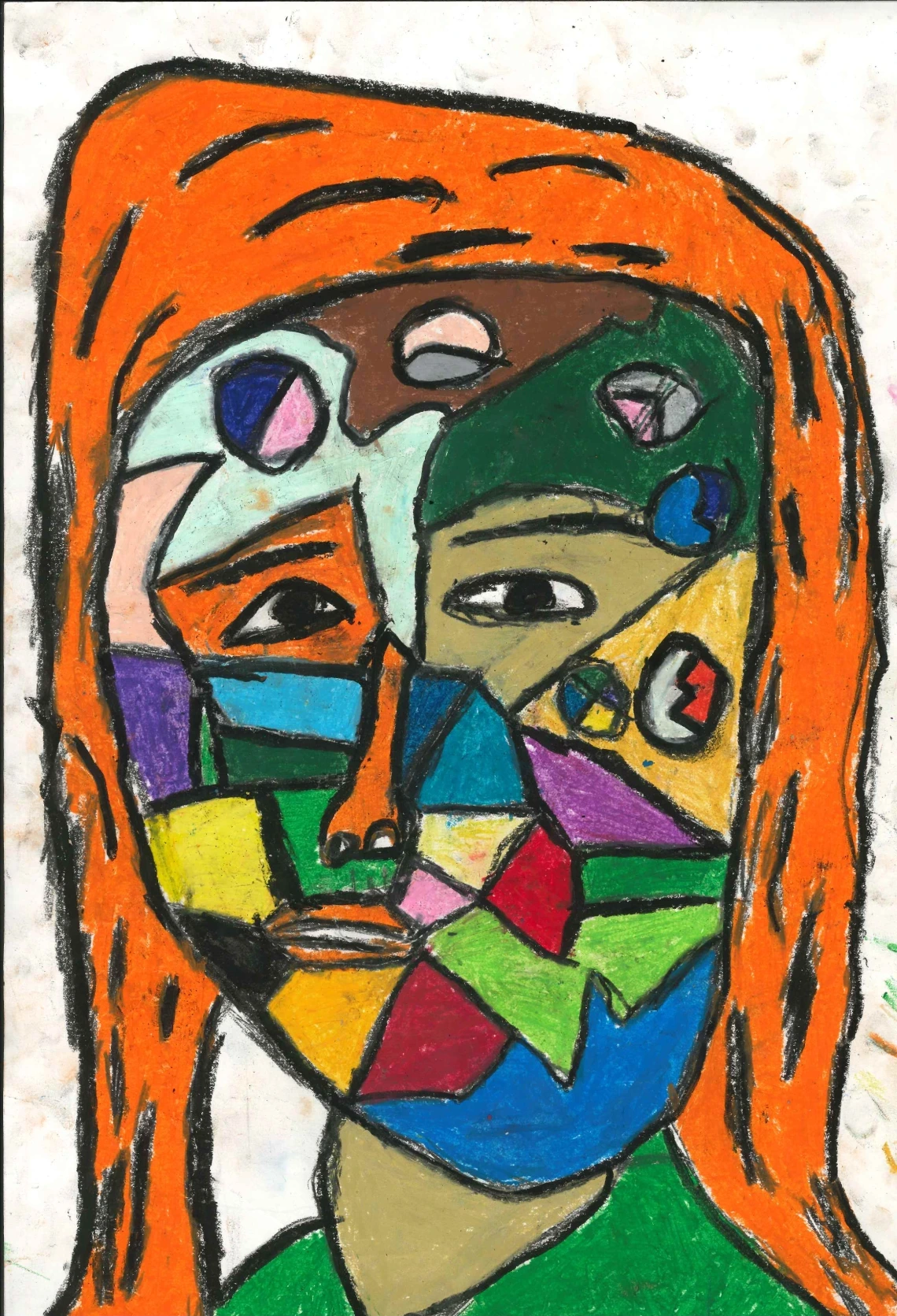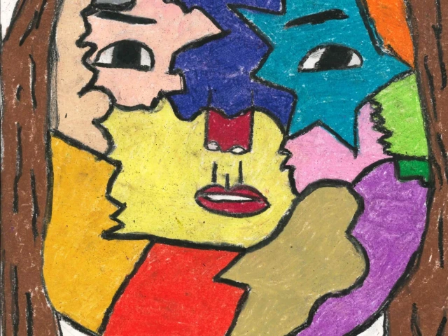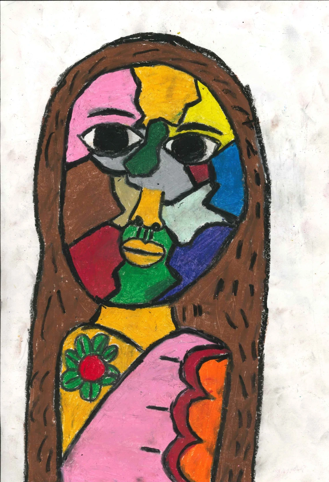 The students portrayed the emotions of Japanese Americans falsely accused and imprisoned in these camps using Picasso-like portrayals of faces fractured in pieces to represent the fracturing of their lives.