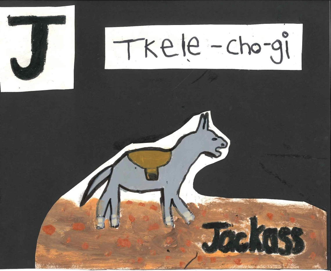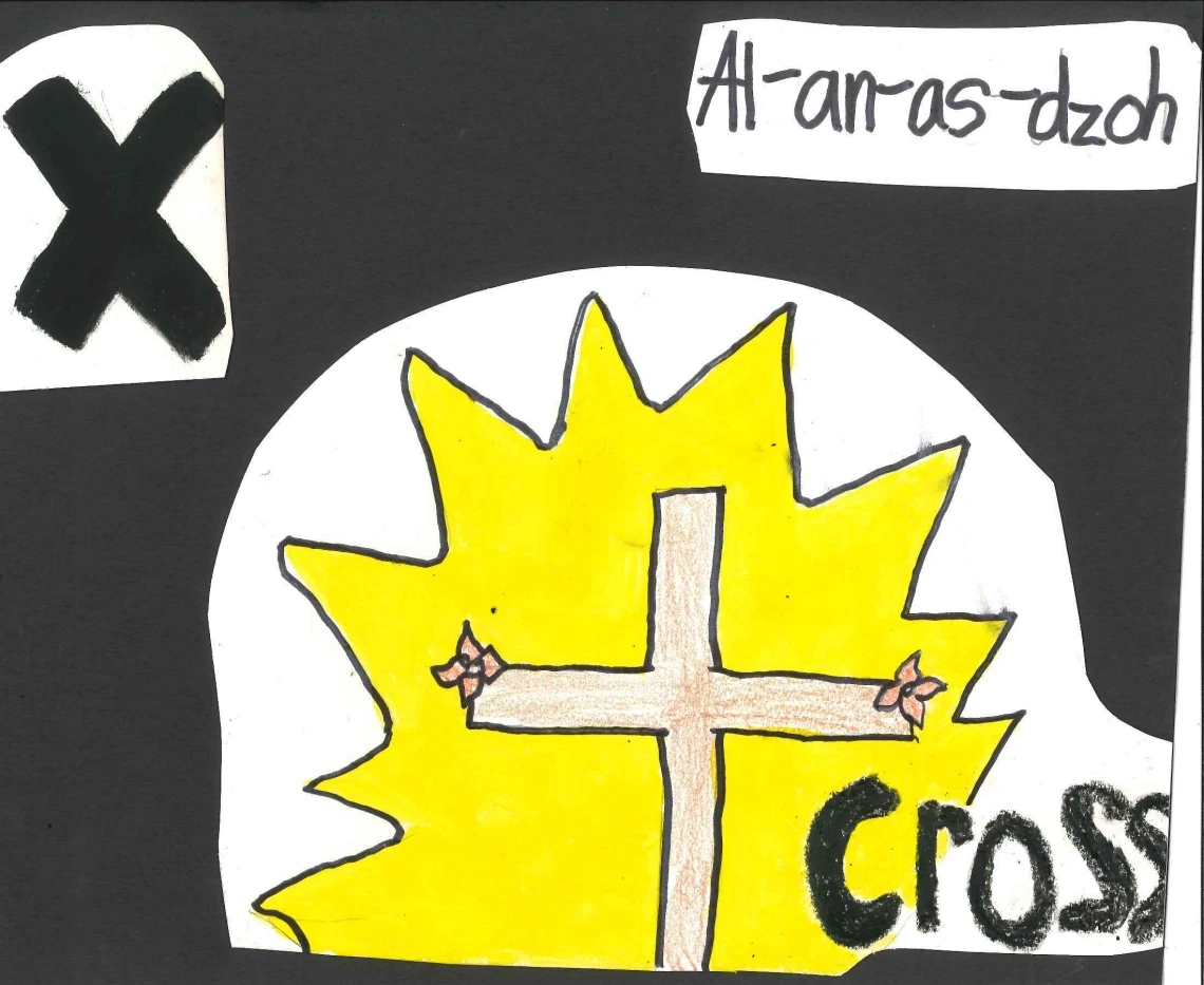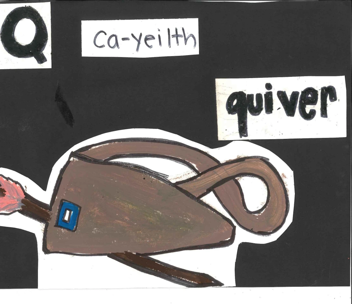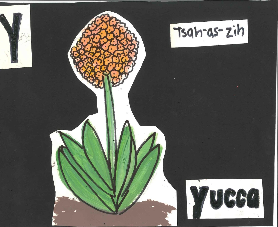 The students connected their interest in the Navajo code and language with their own Latino tradition of abecedario cards. Each selected a code word to paint on a card. Enjoy the cards and the code as portrayed by fifth graders from Van Buskirk Elementary School in TUSD.