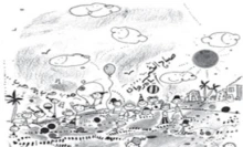 The illustrations of this book are unique in their detailed simplicity. The illustrator uses simple lines and colors to show feelings of wonder, sadness, boredom, happiness and pride. No adult is shown in this world of children, either in the text or in the illustrations indicating, perhaps, that change can only come from the young who are less harmed or cynical. Readers can only wonder if this writer was aware of what was going to happen in Egypt!