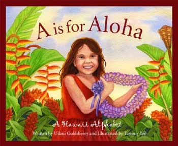 A is for Aloha: A Hawai'i Alphabet is written by Native Hawaiian U'ilani Goldsberry. She was born on the island of Maui but relocated at a young age to the island of O'ahu, where she still resides. U'ilani has written several travel books, cookbooks, and two other children's books, The Shark Man of Hāna: O Ke Kāne Manē O Hāna (2004), and The Storm Dog of the Ko'olaus (2004).