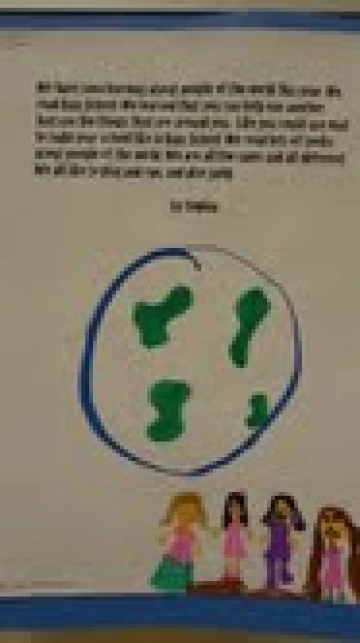 Our team quickly realized that one of the most important things that we could do as teachers to facilitate global awareness within our students was to engage children in meaningful discussions after reading each book. While the activities within the classrooms and at specials extended learning, we could not discount the importance of genuine classroom discussion. As educators we needed to shift our focus from product to process. For our children to grow in their understanding of others, they needed to be encouraged to reflect, share, and make personal connections between themselves and the global literature. The children also needed to have multiple opportunities across time to experience this type of literature and to continue to engage in discussions to foster the development and appreciation for all the people of the earth. Writing about the global literature promoted greater depth in the children’s thinking.