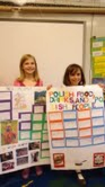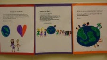 A Global Awareness Celebration Day was planned to acknowledge the children’s work across the year. The children’s reflections on their favorite books became one of the focal points of the celebration. Each of the four classrooms, the librarian, and the art teacher selected several books to reflect upon for the program. The children collaborated to determine the main idea of each of the books as well as why each book was particularly meaningful to the class. Speakers from each classroom were chosen to share these points during the program. A PowerPoint of photos of each book cover was projected onto a screen as the children delivered a book talk on each featured book to the audience of parents, grandparents, and administrators. A documentary that compiled much of the student’s writing, artwork, songs, games, and video clips of students sharing what they had learned was aired. The children and guests enjoyed many snacks of foods from around the world before touring the hallway of the student artwork and written reflections, and visiting the classrooms to view individual student posters created on a choice of research topics of the people, cultures, land, or climate outside of the U.S.A.