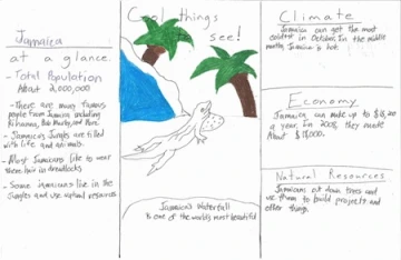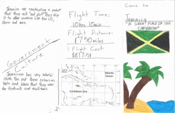 For the study of the Caribbean, the students began in Social Studies by wandering and wondering in the text set and asking questions. They then took notes. From these notes the students created a Travel brochure.