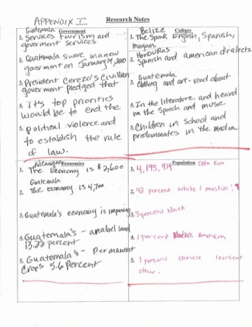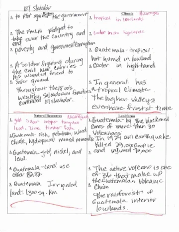 During the student of Central America, the students browsed, asked questions and took notes on Government, Culture, Economics, Population, History, Climate, Natural Resources, Landforms. Data on land area was taken to Math to compare the size of the Central American Countries. In Science, they used their notes on climate and landforms and continued the study of geological concepts.