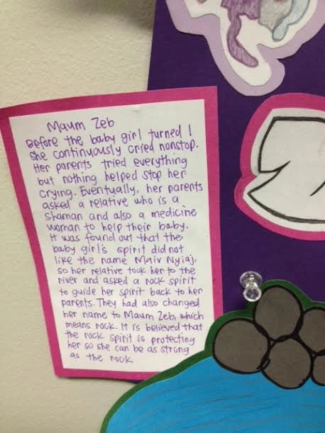 I never really shared my name story before this assignment. This assignment actually gave me the courage to talk about my identity and my culture. I know that not many people will understand my story about Shamans and Spirits because it is so different from the western way of life, but it is also who I am. I’m learning to embrace my differences and I’m learning that stories like mine are unique and that I should be proud of it. Although people may not be able to understand or connect with me, they now know my story. They now know that I have a beautiful story behind my name and I am not just that Asian girl, but I am that Hmong girl who was born in Laos, who had to have her name changed so that for one, she could stop crying and for two, she could enter the United States.