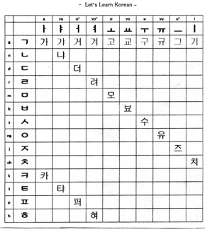 We invited Yoo-kyung Sung, a Korean graduate student from the University of Arizona, to introduce Hangul to the children. She showed them, using magnetic symbols, how each shape represents a sound and how to position the symbols to form a word. Then Yoo-kyung gave each student a chart of Korean symbols and their sounds to use as they explored writing Hangul. Because of the way Hangul was created, the sound/symbol relationships are systematic and easy to learn.