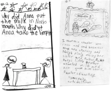 Rosenblatt (1991) points out that readers move between two types of stances or purposes for reading that influence their understandings and experiences of literature. I wanted to invite students to take an aesthetic stance and immerse themselves in the story world we were experiencing and feeling. I believed that if I continuously interrupted the story to explain historical or cultural details, I would instead focus students’ attention on the information they were taking away from their reading, an efferent stance. In any kind of literature experience, it is vital for readers to experience and enjoy the story world. I don’t want them to feel that they have to search for correct answers or facts. I do not want to do anything that will take away from the emotional experience of reading a powerful book that touches their hearts as well as their minds.