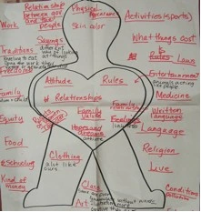 We found that because our students already recognized the complexity of culture within their own lives, we could use their experience of creating Cultural X-Rays to brainstorm what they might explore about another culture. When fifth-grade students began a study of Korean culture, for example, they used a large blank Cultural X-ray to brainstorm the aspects of identity that they needed to explore to understand this culture.
