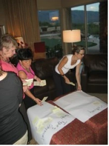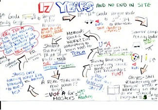 For learning to take place, we need to make connections between new experiences and what we have already experienced and understood about our world (Short, 1993). Real meaning arises when we are able to structure these connections ourselves, to interpret ideas in light of personal experiences (Peterson & Eeds, 1990). Before we could think broadly about journeys we needed to reflect on journeys within our own lives. Teachers and students engaged in mapping a personal journey. During the retreat before we began our study in the Learning Lab, teachers used the concept of journey to frame a life experience by creating professional journey maps.