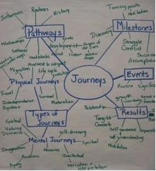 After we had taken the time to gather, sort and web types of journeys, the teachers worked in small groups to write a broad definition of journey. We developed four definitions: