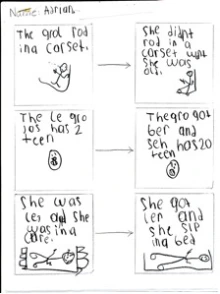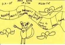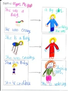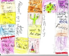 In analyzing the young children’s initial discussions of journeys, we noted that they seemed to be on the edge of recognizing growing up as a metaphorical journey. We read aloud a picture book about the change that occurs as we grow older and created a map that showed two boxes with an arrow in between. Our hope was that students would realize that journeys are not simply movement from place to place; that journeys can be events that involve change in what someone thinks and does. After reading and briefly discussing When I Was Little: A Four-Year Old's Memoir of Her Youth by Jamie Lee Curtis (1993), students showed the growing journeys within the story on their maps.