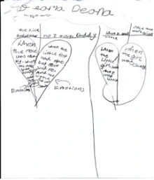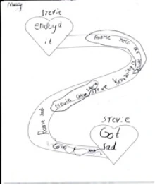 We read No, I Want Daddy! by Nadine Brun-Cosme (2004) and changed the shape of the box on the response map to a heart to symbolically highlight emotional journeys. The response map for Stevie by John Steptoe (1987) showed two heads connected by a pathway to highlight the process of change within a mental journey. Each map was designed to push the young children to think more flexibly and symbolically about journeys.