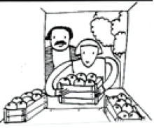 Another nonfiction text was an oral story related to food distribution and food safety. This story was told through the use of visual picture cards similar to Kamishibai and a flow chart that focused on the steps involved in growing tomatoes and taking them through the food system to eventually getting them to someone’s dinner table.