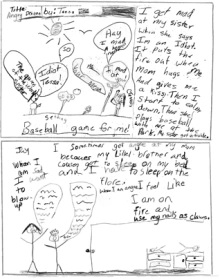 After the third excerpt and response on the graffiti board, we talked together about their observations. Students’ comments focused on the father’s desire to work but inability to find a job to feed his family. They stated that he was not lazy and condemned the business owner who only hired nine workers when there were so many crowded at the gate. Other students pointed out that if the owner hired everyone, his own family would go hungry. They noted that the family didn’t have enough food; they had just enough to get by but were still hungry. One group of students had a major debate about stealing and whether it is better to steal than to die from hunger. The full extent of the impact of this movie became clear as they continued to refer to the events from the movie months after viewing the clips. They felt the family’s pain and hunger in ways that they could not put into words but that stayed with them throughout our inquiry.