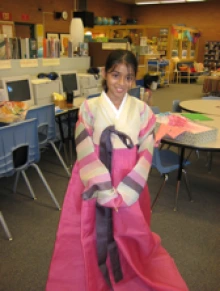 Many of the center engagements came from the childhood experiences of our language specialists, making them more than fun activities from a strange land for the children. The songs, games and projects were an authentic part of the identities of our specialists and a reflection of what was important in their lives. The personal stories they told around the projects that the students did at each center deepened the cultural significance. Using chopsticks is a part of Junko’s identity, so learning to use them from Junko gave students insight into her as a cultural being. As Dan helped the students try on his own children’s traditional Koran clothing, they came to understand how Korean traditions play a role in his life as a Korean American father. Using short video clips from YouTube of Chinese students doing morning exercises, Ke shared her experiences as a young school girl in Beijing. Students associated the center engagements with the identity of the language specialists rather than seeing them as exotic, isolated practices from another part of the world.