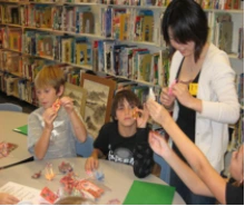 We began each club meeting with a snack and whole group story time. We selected literature written in the native languages of our specialists. Dan, Ke, and Junko helped us locate books that were originally published in China, Japan, or South Korea with stories that authentically represented the cultures within these countries. Some of the books had been translated into English, some were in the original language, and some were bilingual. The students enjoyed listening to the stories in their original language, relying on the illustrations to make sense of the story. At times we read the book in both the world language and English. The children were curious about the patterns and repetitions that they heard as the specialists read and they asked many questions, trying to make sense of the structures and sounds within the language. It was evident that they were connecting the new language experiences to what they knew about English.