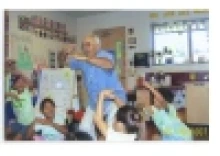 This photo was taken when Juan Felipe Herrera visited the school for a daylong author event. The visit culminated in a school-wide picnic where students dramatized one of his stories, Super Cilantro Girl. Families noticed that authors like Herrera wrote books that were based in the knowledge of insiders from their culture. One family indicated, "We are able to connect with the lives of our families in how they live together and eat well and are learning to use my culture with our habit to read. And the books are written in such a way that is simple and we understand the children are like us." Another parent shared, "It’s a very exciting feeling when reading a book because it makes you closer. It’s awesome and important for her to understand her background as a Hispanic and that if she really wants to be someone she can always make her dream come true, but work for it as well." Culture was viewed as being passed across different generations and included the resources that families tapped into within their daily life.