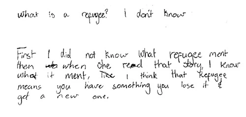 Several children at each school initially had no idea who/what refugees were. Below are the first two definitions of a Grade 5 child.