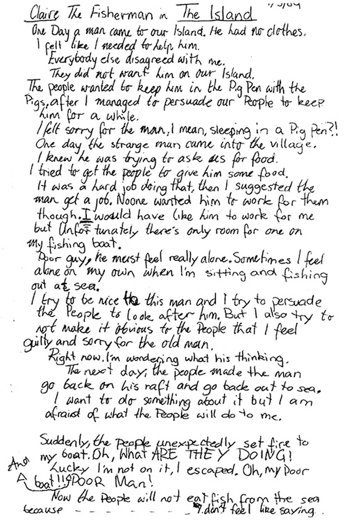 In this first example Lilianna re-wrote the story as the stranger.