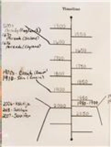 To contextualize our focus on global literature, we purchased a large world map (approximately 2’ x 3’) for each classroom. We laminated the maps and mounted them on foam core so they could simultaneously be easily accessible to the teachers and children for close up work but could also be moved to different places in the classrooms. The teachers also created and posted timelines in their classrooms. In some classrooms the timelines stretched across the wall over the chalkboard and in others they were on a large poster.