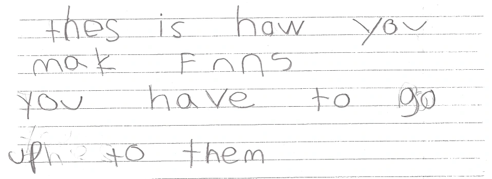The following week, we read The Name Jar (Choi, 2001).The students wrote how they could be a friend to a new student in their school.We asked Carlyn if we could use her writing sample to share with the class. She was very pleased that we had selected her writing piece to share. Carlyn is a monolingual English speaker. Carlyn’s written piece provided us with an opportunity to communicate as a group and become comfortable with each other. Carlyn shared the following piece with us: