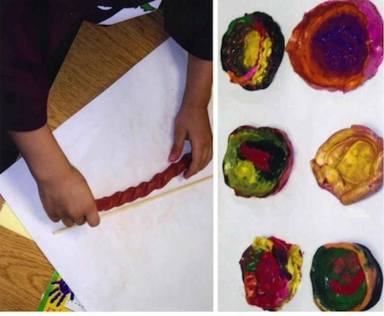 To understand how child readers might interact with this body of literature, I asked for the help of a bilingual first-grade class of Mexican-American students in the Houston area. Seven female students and nine male students participated in the study. Their teacher read each book to the class and led group discussions of their reactions and observations, and the students also recorded their thoughts individually in varying formats. Readers were encouraged to connect their own experiences with those of the protagonists; they were often asked, “If you could meet the main character, what would you say to him/her?”, and were encouraged to explore the modes of expression (family album, mural, pottery, salsa music, poetry, etc.) featured in each book (see Figures 1-3).