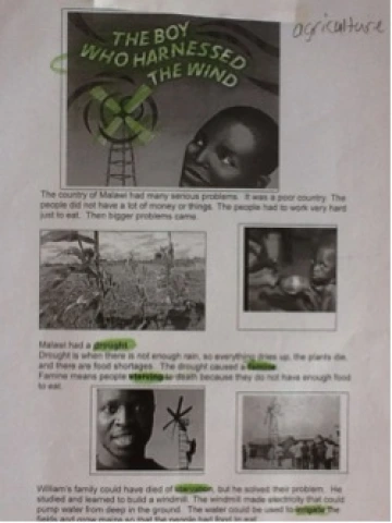 Making global literature the centerpiece of our year helped keep instruction focused on material that was engaging, challenging, and interconnected. We were armchair travelers as the globe was always on the table while we read, and students looked up the places where the stories took place. Geography started to become ESL students’ strength, especially in relation to their peers. They could pick up the globe, find our location, their native country, and locate William Kamkwamba’s country in Africa or show the distance Wangari Maathai travelled by tracing their finger on the globe from Kenya to the American Midwest where she studied science. We studied the environment, learned vocabulary for the parts of a tree, from roots to trunk to canopy. We talked about racism, protest, and civil disobedience.