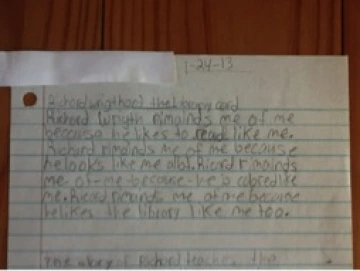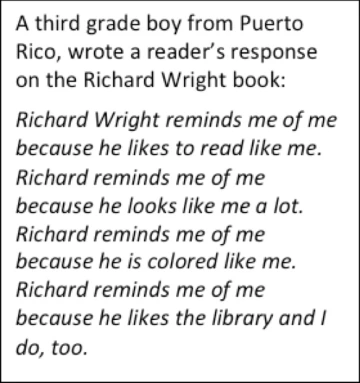 Two fabulous books, Tomás and the Library Lady by Pat Mora (1997) and Richard Wright and the Library Card by William Miller (1999) provided material to write compare/contrast essays as well as informal reader responses. Our theme was the wonderful possibilities that libraries and education hold for us.